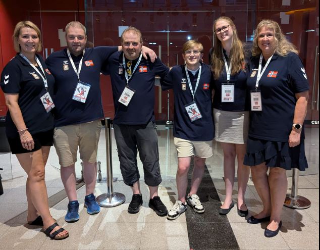 Norge Mixed, fra venstre: Ranja Sivertsvik, Kåre Bogø, Stian Evenstad, Nicolai Heiberg-Evenstad, Sofie Græsholt Sjødal, og Elisabeth Græsholt Sjødal