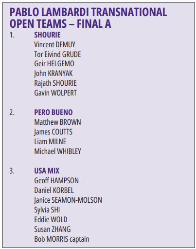 Her en lite oppsummering av sluttresultatene i World Bridge Games i Buenos Aires dagen etter avslutningsermonien.