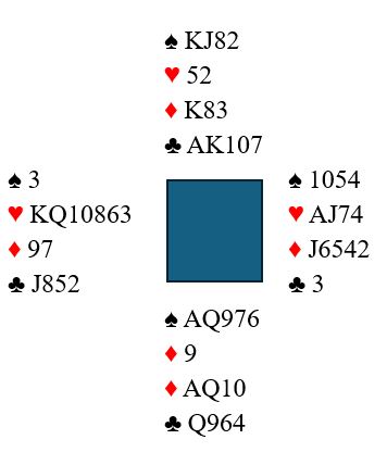 Alt dette er vel og bra, men det er alt for tidlig å bestemme seg for hvordan kløveren bør spilles allerede nå. Først tas trumfen ut. Da oppdages at vest startet med en spar og øst med tre spar. Pga. trumfsitsen har alt det vi først tenkte om mulig kløverlengde hos en av dem endret seg. Så langt har vest vist seks hjertere og en spar = syv kort. Øst har vist tre trumf og fire hjertere = også syv kort. Nå er det 50-50 hvem som eventuelt har fire kløvere.