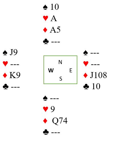 Så vest må kaste spar 9. Men da spilles spar 10 til den nå single knekten etterfulgt av at vest med to kort igjen må spille unna ruter konge slik at det blir to ruterstikk til spillefører.