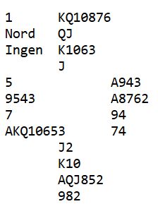 Så spørs det hva vest melder, og det blir nok enten 3 kløver eller et hopp (?) i kløver. Da må nord få sagt fra om lang sparfarge selv om i en uforstyrret meldesekvens burde man vist ruterfargen også.