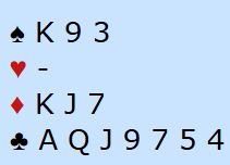 Det er ganske surt å gå bet i 6 kløver siden kun K-10 fjerde i mot i trumf gir bet.