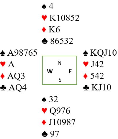 Det er noen sitser hos N/S som faktisk gir 100% spill også etter trumf- eller kløverutspill. Og spillet handler også uten det hjelpsomme utspillet hjerter konge om eliminasjon og innspill, men på en litt annen måte.