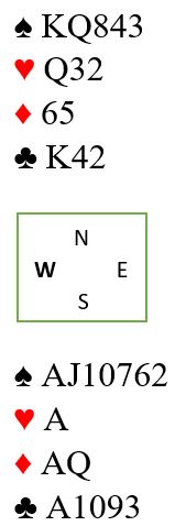 Men det skjedde ikke. Da Sophie hadde sagt 1 spar og syd pass kom vest med en overraskende meldingen for øst: 2 hjerter. Nord hoppet til 4 ruter, og da kom nok en overraskende melding fra Sophie: 7 hjerter!
