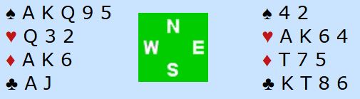 Hvis det for eksempel vinnes med hjerter ess i første stikk fulgt av kløver til knekten blir det fire kløverstikk slik det sitter. Da er det tolv sikre, og veldig gode muligheter for det trettende ved hjelp av en skvis, dobbelskvis (de to motstanderne holder hver sin major), eller som her at en av majorfargene gir full uttelling. Så om kløver spilles slik blir det enkelt tretten stikk.