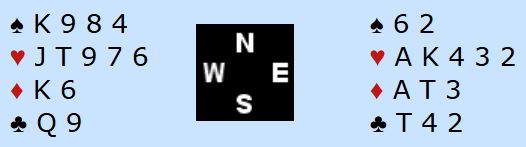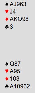 Det ble tre rutertapere, en bet. Problmet er å unngå tre rutertaperne i tillegg til at N/S må få for hjerter ess.