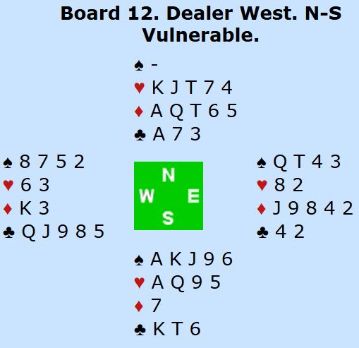 Dette er en god storeslem i hjerter. Det er veldig mange måter å vinne den på, og nesten ingen brukbar plan vil føre til bet slik som det sitter. Ved samtlige bord ble det hjerterkontrakt, og alle spilleførerne fikk tretten stikk.