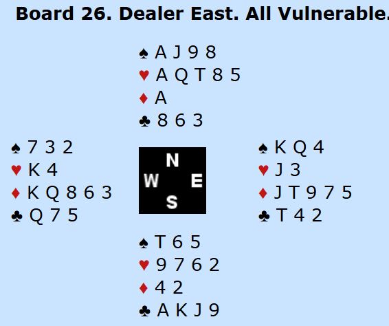 Den svenske nord la ned trumfesset. Men «safevarianten» i hjerter var ikke en safevariant i denne kontrakten idet det viste seg at det var to spartapere og en kløvertaper som sammen med den ene trumtaperen som kunne vært unngått ga en bet, Danmark +100.