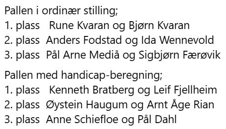 Link til fullstendige resultatlister finnes på bridge.no under Resultater.