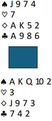 Det var kanskje ikke så veldig lurt, for selv om han er garantert bet i 4 spar, har han ingen anelse om hvor mange stikk motparten kan klare i grand. Denne gangen hadde det blitt bet i 4NT hvis bare Nord hadde spilt ut en normal kløvertier, siden han da ikke kan bli innspilt senere.