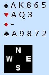 Du vet at sparfargen ikke sitter rundt, så du må satse på de andre fargene. Vest startet med å spille en liten ruter til Nords tier og bordets Ess. På neste ruter legger Syd ruter 5. Og du?
