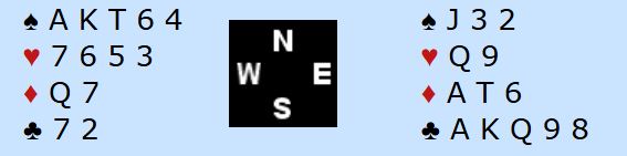 Det var en lang rekke med 6NT, noen med tolv og noen med tretten stikk. Spillefører har 2+3+5+2 = 12 sikre. Det går an å få tretten stikk ved hjelp av en skvis mot syd i hjerter og spar. Men en må være litt forsiktig med overgangene. Hjerterutspill gjør det litt knotete, men det går an da og.