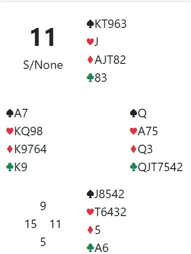 Vinnerparet fikk spille 2 kløver som Ø/V. Det endte med de ni stikkene som kan vinnes. +110 som ga hele 89%. Hvorfor det?