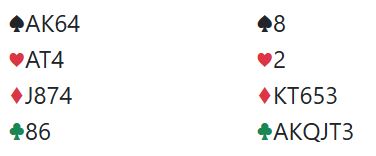 Her er et spill fra en av kampene som NORMARK vant 40-0! Det danske paret meldte seg opp i den hardmeldte lilleslemmen 6 ruter med disse kortene: