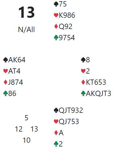 Syd hadde vist begge major så nord var favoritt til å ha ruterlengde. Ringreven Niels Krøjgaard var den eneste som vant denne slemmen, +1370! Ved det andre bordet ble kontrakten 5 ruter med elleve stikk, 13 IMP til NORMARK.
