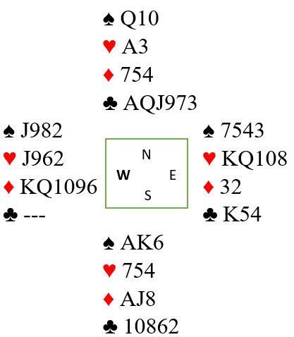Syd har utført en svært uvanlig, men i dette spillet helt nødvendig manøver, det spektakulære påspillet av knekten fra A-J-x under kongen fra venstre! Det ser jo litt sånn "hull i hodet" ut, så hvorfor?