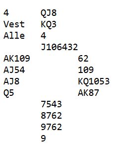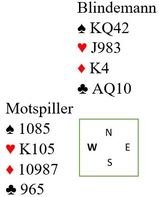 Syd for lag Hauge prøvde seg på singeltonutspill, hjerter 9. Det ble feil: