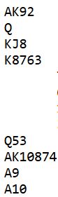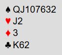 Det ser nokså uinteressant ut. Det blir normalt elleve stikk om det ikke blir kløvertaper og kun ti stikk om man må gi bort ett stikk i den fargen. Kan noe gå galt?