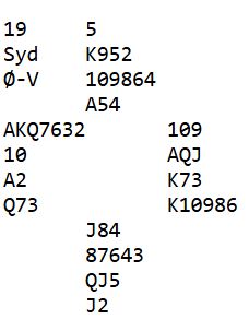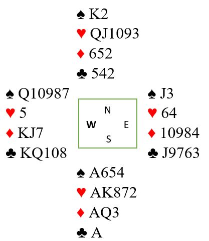 Hvis kløver ess spilles blir det selvsagt ingen problemer. Men vest kan også være den som har firekorts kløver. Med denne sitsen kan det bli to kløvertapere om kongen spilles først. Og om kløver ess spilles tidlig får vest to kløverstikk om esset spilles først.
